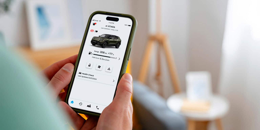 Telefonirakendusega SUZUKI CONNECT saad jälgida oma e VITARA seisundit ja kasutada erinevaid kaugjuhitavaid funktsioone, nt saad lukustada auto uksed, juhtida laadimist või lülitada sisse salongi või aku eelsoojenduse. SUZUKI CONNECT laseb nautida e VITARA omanikuks olemist veelgi mugavamalt ja turvalisemalt.